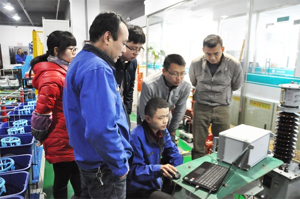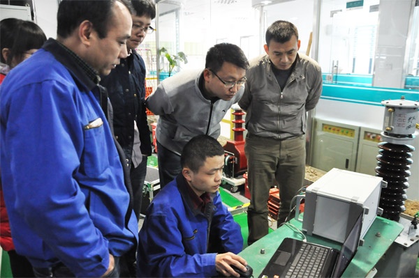 繞組變形測試儀是通過檢測變壓器各個繞組的幅頻響應特性,并對檢測結果進行縱向或橫向比較,根據幅頻響應特性的變化程度,判斷變壓器繞組可能發生的變形情況。在車間,工程師為客戶演示繞組變形測試儀的操作過程,客戶在一旁觀摩學習,并就產品的穩定性、準確性進行了反復地檢驗。還參觀了產品展覽室,深度探究了一番我們的實力。