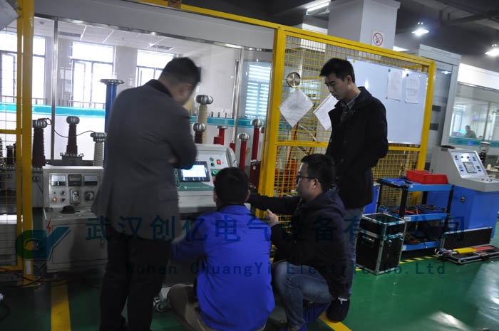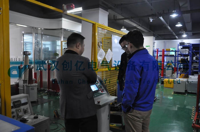 參觀完我公司后,客戶一行對我公司的行為規范和規模有了一致肯定。提出想檢測由我公司生產的智能耐壓試驗裝置。過后技術工程師就為客戶現場檢測了我公司自產的CYYD系列智能耐壓試驗裝置。