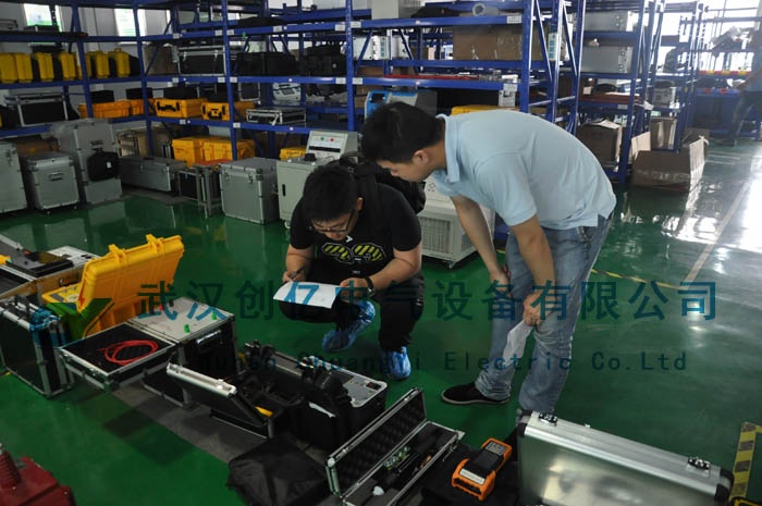 前段時間,銷售部傳來喜訊我司中標北方國際一批設備。近日,在我司各部門的通力配合下,貨已經全部備齊,并邀請了張工前來我司驗貨。接到張工后,我們先去廠房檢驗了耐壓等大型設備,然后我們公司的辦公區(qū)車間檢驗CYJB-1200A繼保、CYKC-6A斷路器動特性測試儀等的小型設備。