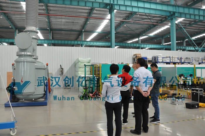 在參觀過程中,客戶對我司即將出口的新加坡的GIT(SF6移動式工頻耐壓局放試驗裝置)表現(xiàn)出濃厚的興趣。