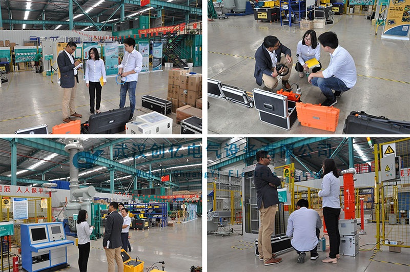 參觀完設備展區后,一行人來到生產車間進行考察,客戶對電纜故障測試儀、變比測試儀、介損測試儀、直流耐壓測試儀等產品的模擬演示都進行了現場觀摩,對其感興趣設備儀器的相關技術問題提出與我們詳細探討,我們表現出的專業知識水平令客戶十分滿意。