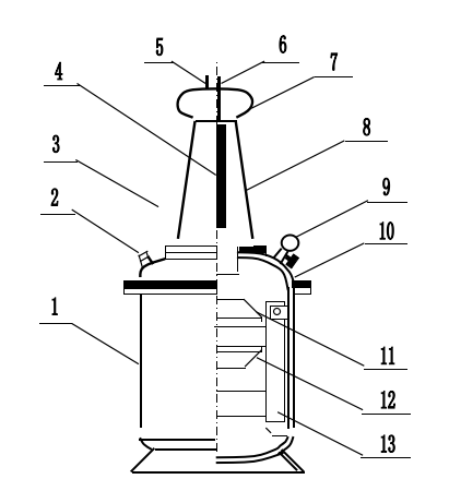 10-封頭    11-低壓繞組    12-高壓繞組    13-鐵芯夾件