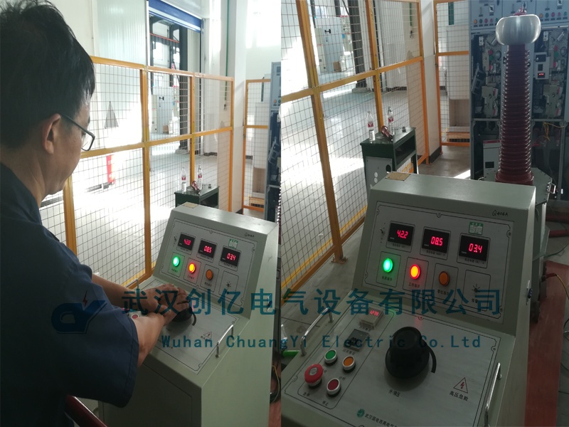 隨后,用其購買的CYYD-15/150工頻耐壓試驗裝置對現場的10kV開關做耐壓試驗。客戶按照標準升壓至42kV一分鐘無閃絡,試驗通過!