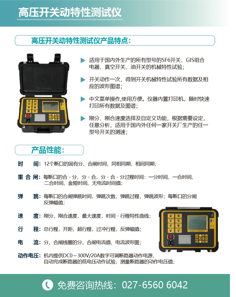 彈跳:每斷口的合閘彈跳時間,彈跳次數,彈跳過程,彈跳波形;每斷口的分閘反彈幅值
