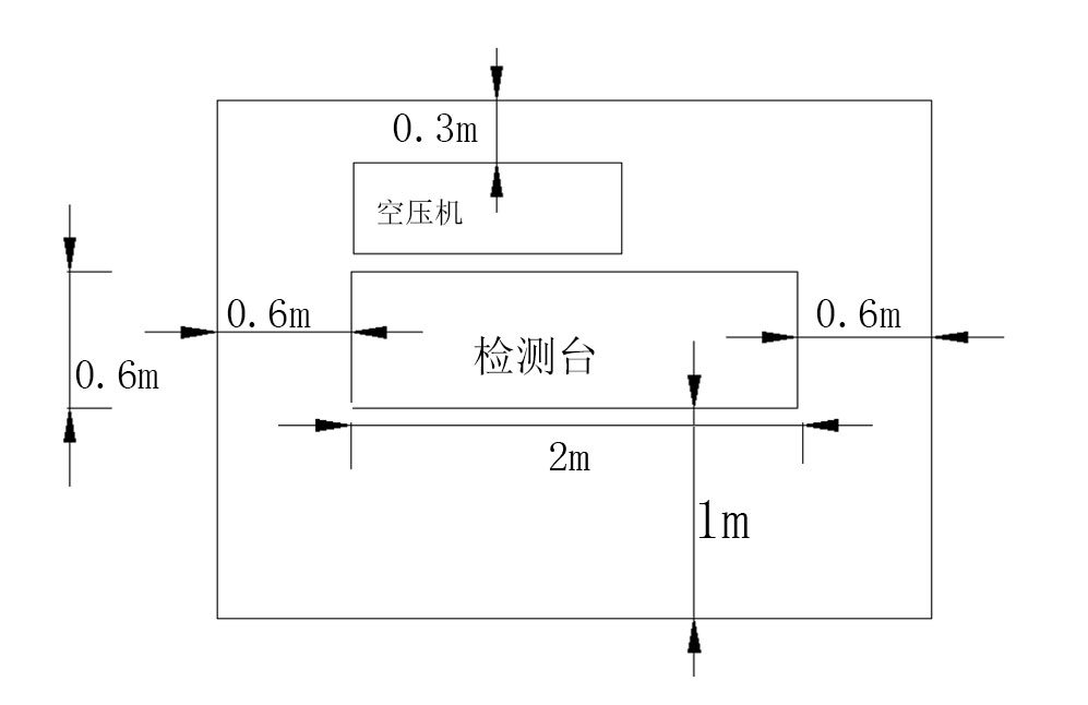 本檢測臺工作時應使正面、背面及側面留有足夠的工作空間,便于檢測臺的操作、拆卸檢修、清理等工作,如圖1所示。